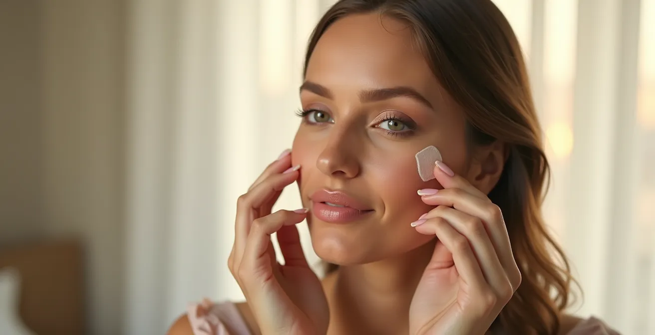 Der Schlüssel liegt in der Vorbereitung und der Wahl des Werkzeugs. Anstatt Puder mit einem Pinsel oder einer trockenen Quaste aufzutragen, verwenden Sie einen leicht angefeuchteten Mini-Beauty-Schwamm. Der entscheidende Trick, wie er auch in Backstage-Bereichen zur Anwendung kommt, ist die „Doppel-Fix-Technik“: Sprühen Sie zuerst etwas Fixierspray auf den Schwamm, bevor Sie ihn in eine kleine Menge losen, transparenten Puder tupfen. Drücken Sie den so vorbereiteten Schwamm sanft auf die mit Concealer abgedeckten Stellen. Die Feuchtigkeit des Sprays und des Schwamms lässt den Puder mit dem Concealer verschmelzen, anstatt nur darauf zu liegen. Das Ergebnis ist ein fixierter, geglätteter Bereich, der nachweislich acht Stunden lang hält.