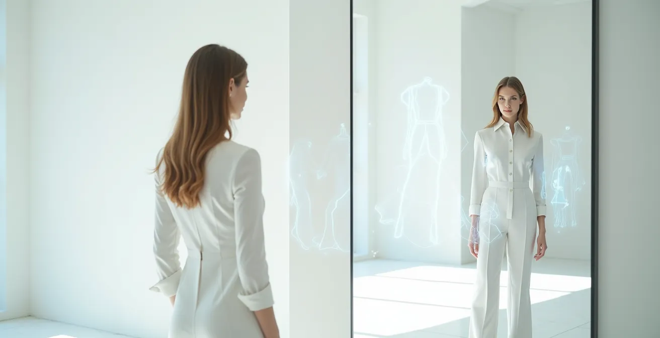 Die Grenzen der reinen Maß-Empfehlung haben Technologieunternehmen wie Veesual erkannt. Ihre Lösung geht über Zahlen hinaus und simuliert visuell, wie ein Kleidungsstück an unterschiedlichen Körpertypen sitzt. In Tests mit großen Händlern wie La Redoute zeigte sich der Mehrwert: Das System stellt dieselbe Robe auf einem Model der Größe S völlig anders dar als auf einem Model der Größe XL. Es berücksichtigt, wie der Stoff fällt, wo er spannt und wie sich die Proportionen des Schnitts an die jeweilige Silhouette anpassen. Diese Technologie zur virtuellen Anprobe visualisiert die Passform, anstatt sie nur zu berechnen, und ist ein wichtiger Schritt zur Lösung des Form-Dilemmas.